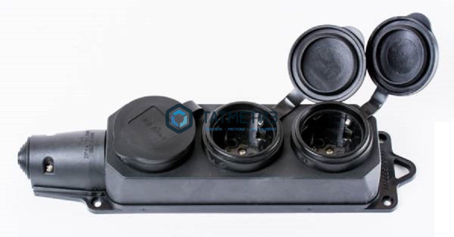 Колодка удлинителя 3-м с/з каучук с заглушками 16А 250В IP44 (еврослот) UNIVersal 602230