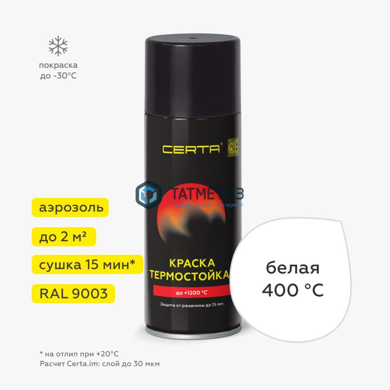 Эмаль термостойкая, антикор, БЕЛАЯ, АЭРОЗОЛЬ, 520мл, до 400 С Церта