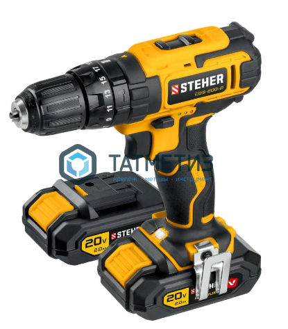 Ударная дрель-шуруповерт STEHER 20В, 2 АКБ 2Ач CDS-200-2 предназначена для сверления (в том числе ударного) отверстий в различных материалах, а также для монтажа, демонтажа резьбовых соединений.