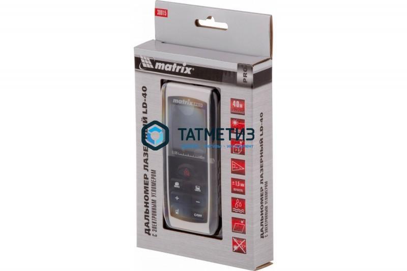 Лазерный дальномер с электронным угломером Matrix LD-40 38015 используется для измерения линейных расстояний и углов, вычисления площадей и объемов.