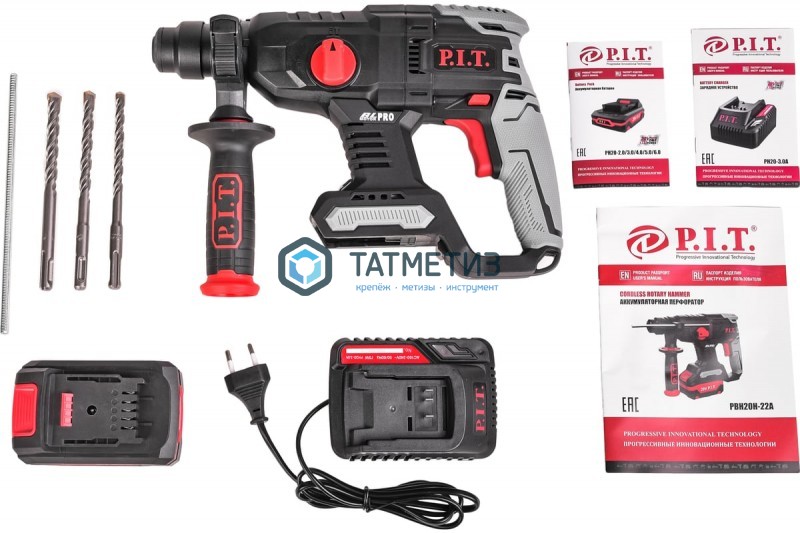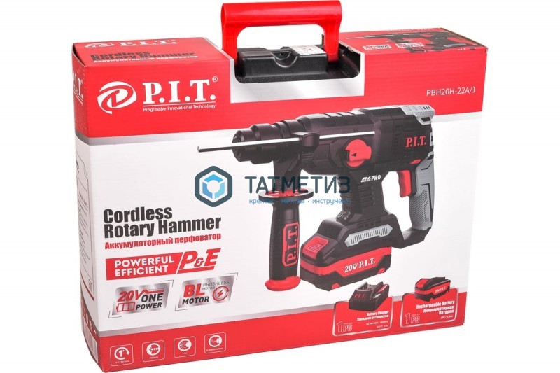 Перфоратор аккум. P.I.T PBH20H-22A (SDS+,20В,б/щет,2 ак*4.0Ач,Li-ion,2реж,1.5Дж,бур 22мм, ЗУ)