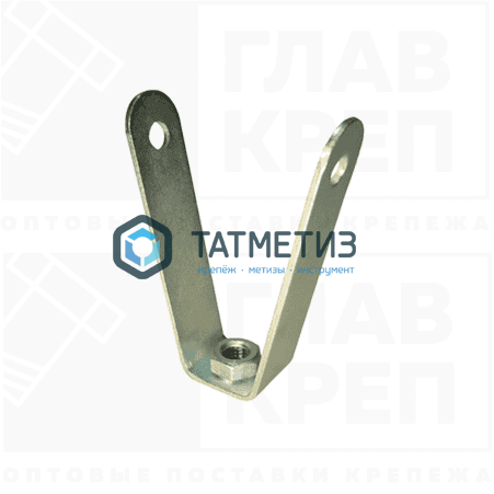 Кронштейны данного типа используются для работы с воздуховодами и другими навесными системами. V-образный кронштейн имеет 2 больших изгиба, между которыми расположена гайка. Благодаря нестандартным точкам сгиба, кронштейн обеспечивает надежное крепление к профнастилу. Данная модель не имеет виброизолятора, из-за чего вибрация не глушится и передается в точку крепления.