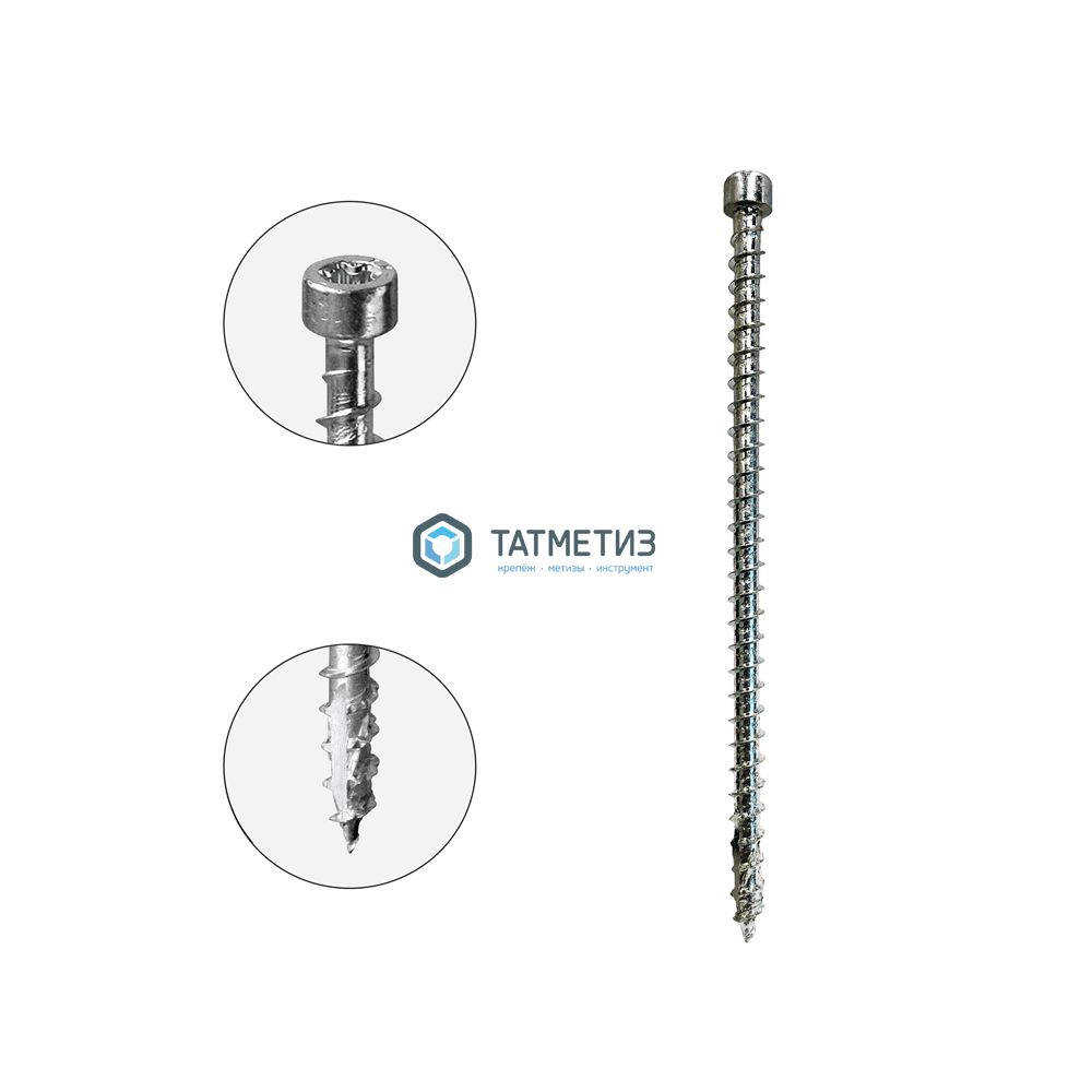 Шуруп-саморез ЦИЛИНДР головка 6х200 (100 шт/уп) белый цинк ПОЛНАЯ резьба