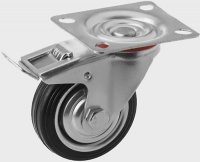 Колесо поворотное d=125 мм, г п 100 кг, с тормозом, резина металл, игольчатый подшипник, ЗУБР