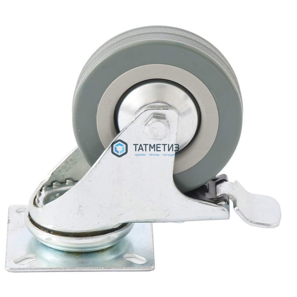 Колесо поворотное с тормозом d-75мм, крепление  платформенное // СИБРТЕХ